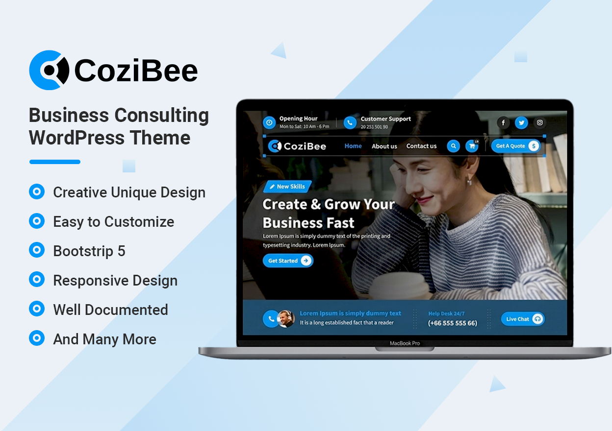 CoziiBee is a Modern Multipurpose Business theme for Agency, Business, Finance, Consulting, Factory, Real Estate, Construction, Cleaning Service, Startup or any other individual website due to its adaptability. It looks perfect on all modern browsers, mobile, tablets, and any device, Theme is full of customization options and settings, you can change almost everything. CoziPress provides unique layouts Such as Service, Team, About, Gallery, Blog Pages, Shop Pages, Pricing Pages, Contact Page, Coming Soon, Careers Page, and many more.